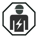 Dieses Symbol weist auf einen Sicherheitshinweis hin: "Achtung! Installation nur durch elektrotechnische Fachkraft.